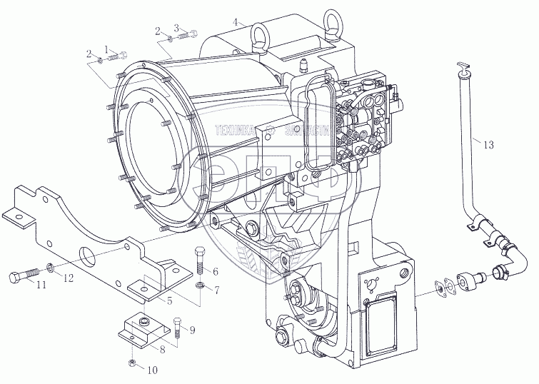 Каталог запасных частей к технике: Foton-FL958G. Монтаж коробки передач