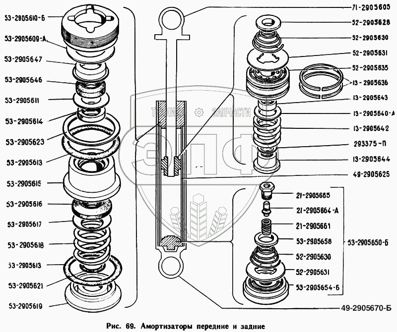 Каталог запасных частей к технике: ГАЗ-71. Амортизаторы передние и задние