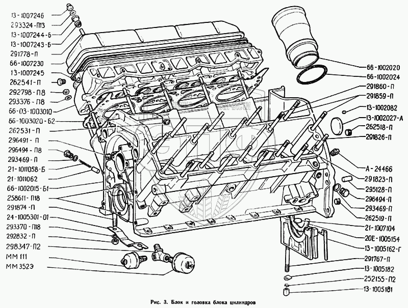 Каталог запасных частей к технике: ГАЗ-71. Блок и головка блока цилиндров