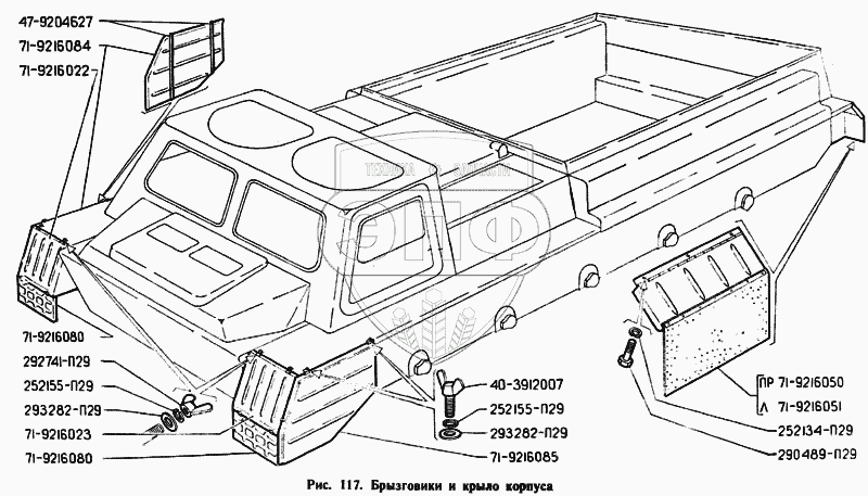 Каталог запасных частей к технике: ГАЗ-71. Брызговики и крыло корпуса