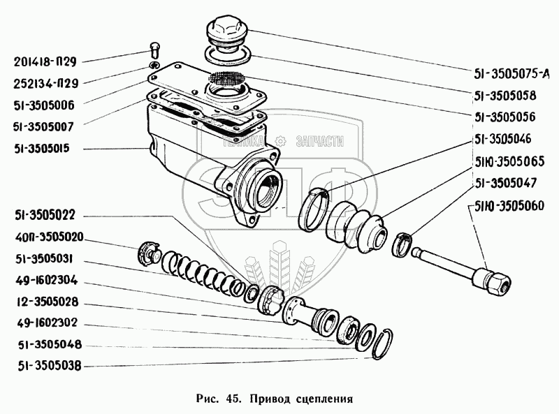 Каталог запасных частей к технике: ГАЗ-71. Привод сцепления