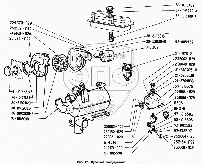| 53-1015552 | 53-1015552 | Корпус вентилятора пускового подогревателя в сборе | Нет на складе | |
