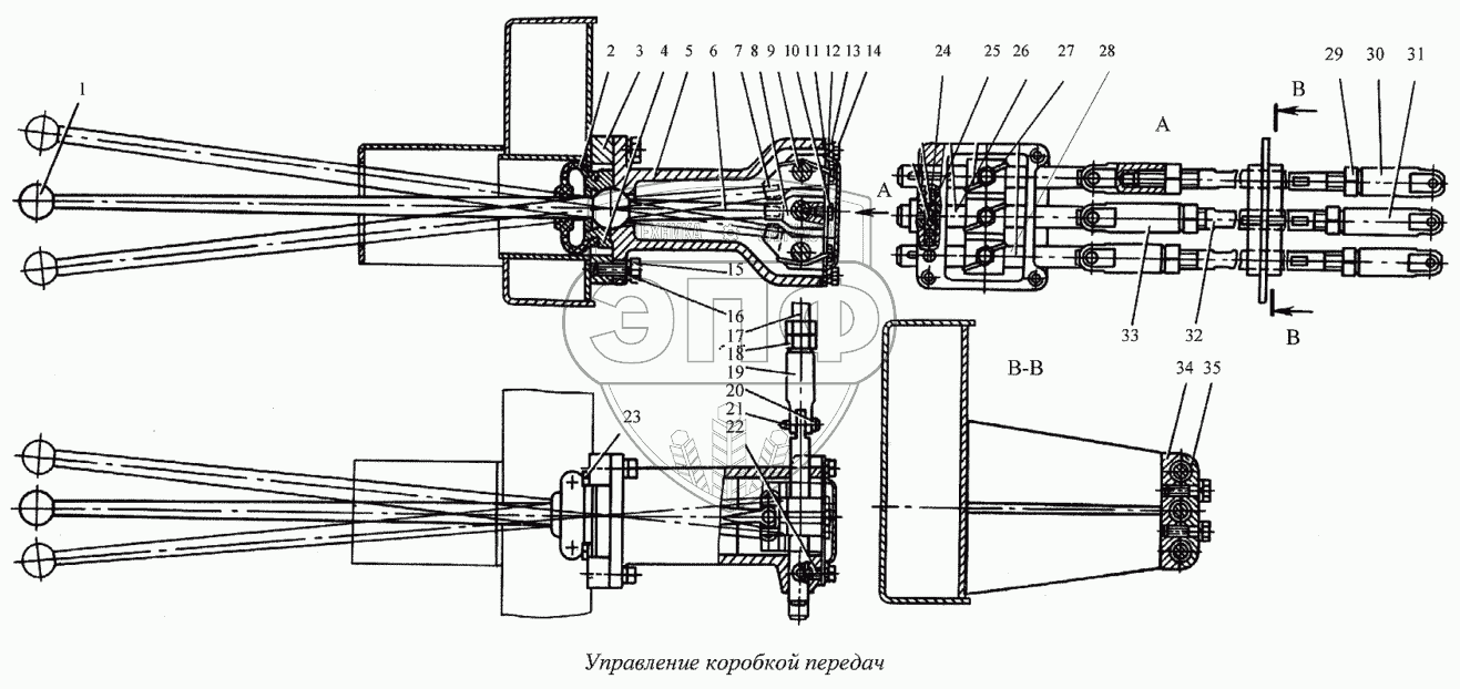 Каталог запасных частей к технике: Геомаш ЛБУ-50. Управление коробкой передач