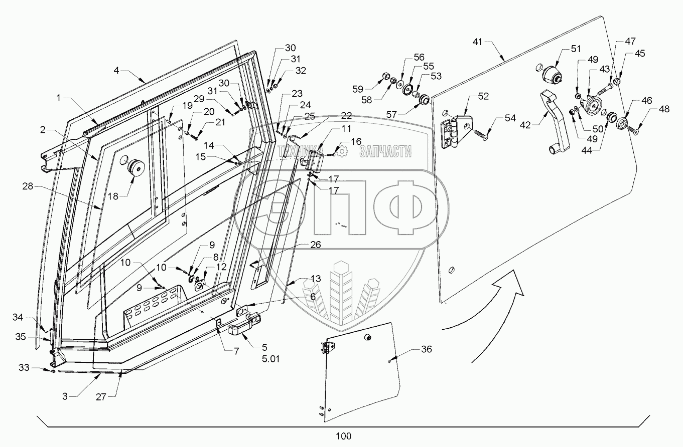| 100 | 2073687 | CABIN DOOR, LEFT COMPL. | Нет на складе |