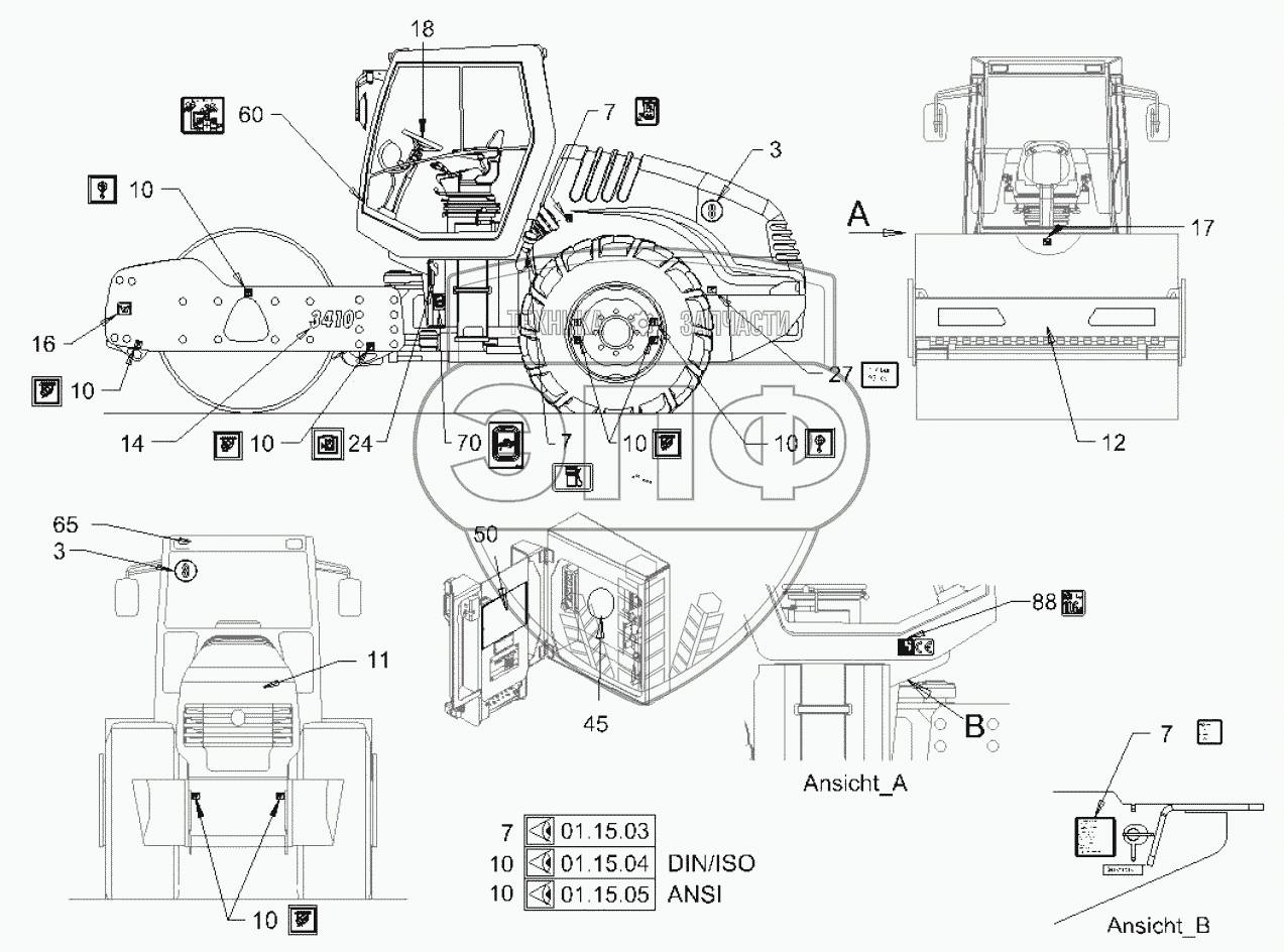 Каталог запасных частей к технике: HAMM 3410. STICKER ARRANGEMENT