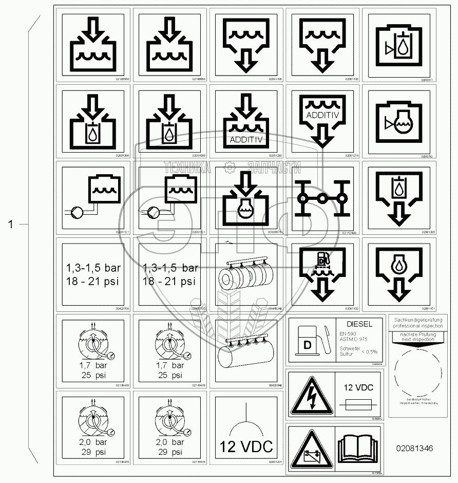 Каталог запасных частей к технике: HAMM GRW 15. STICKER ARRANGEMENT
