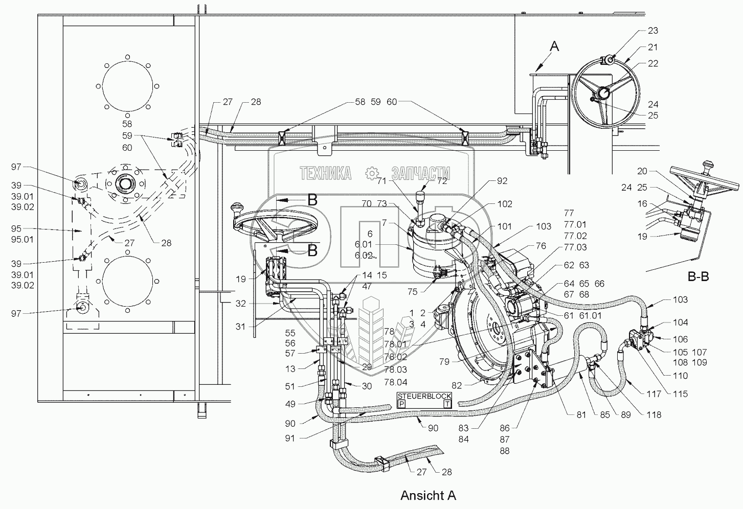 Каталог запасных частей к технике: HAMM GRW 21. STEERING