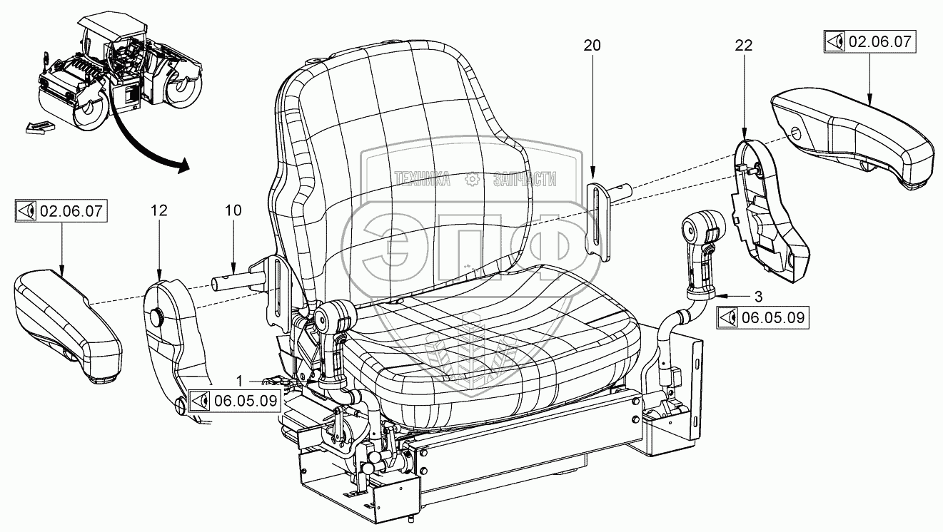 Каталог запасных частей к технике: HAMM HD110. OPERATOR'S SEAT WITH ADJUSTMENT