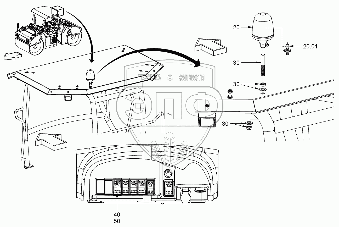 Каталог запасных частей к технике: HAMM HD110. WARNING LIGHT (SUN ROOF)