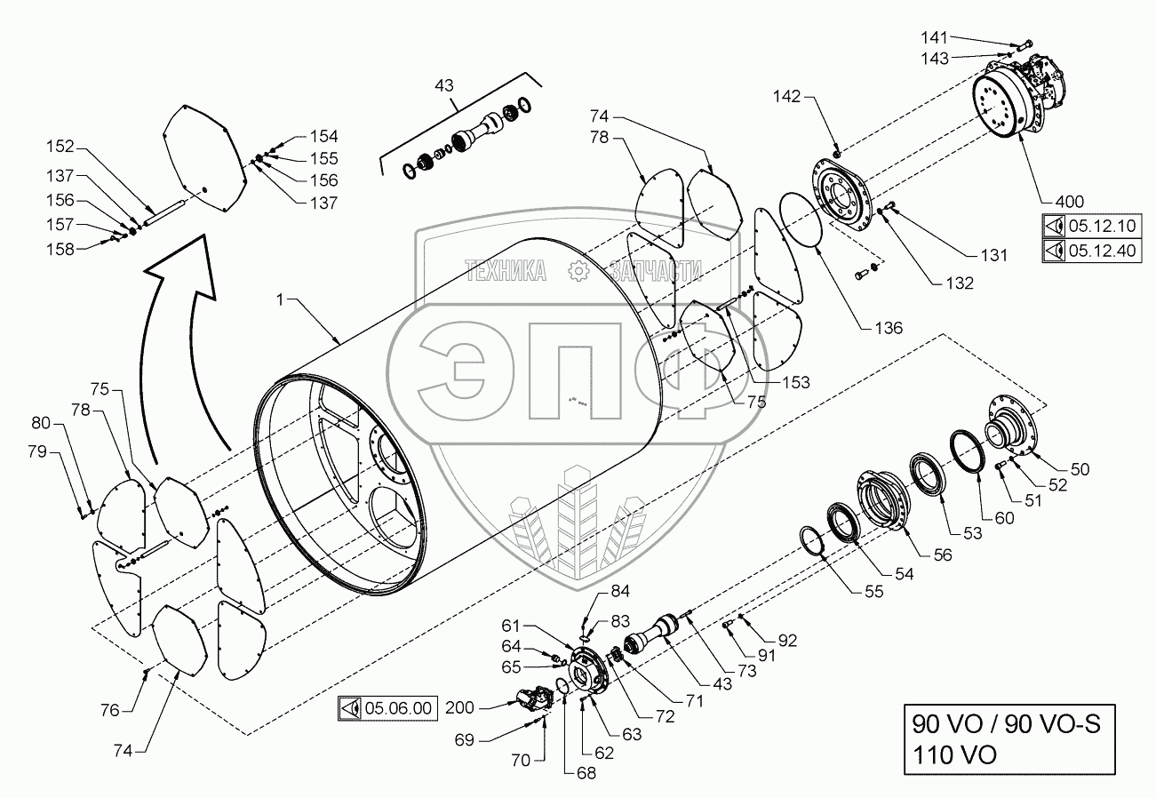 Каталог запасных частей к технике: HAMM HD90. SMOOTH ROLLER DRUM WITH OSCILLATOR