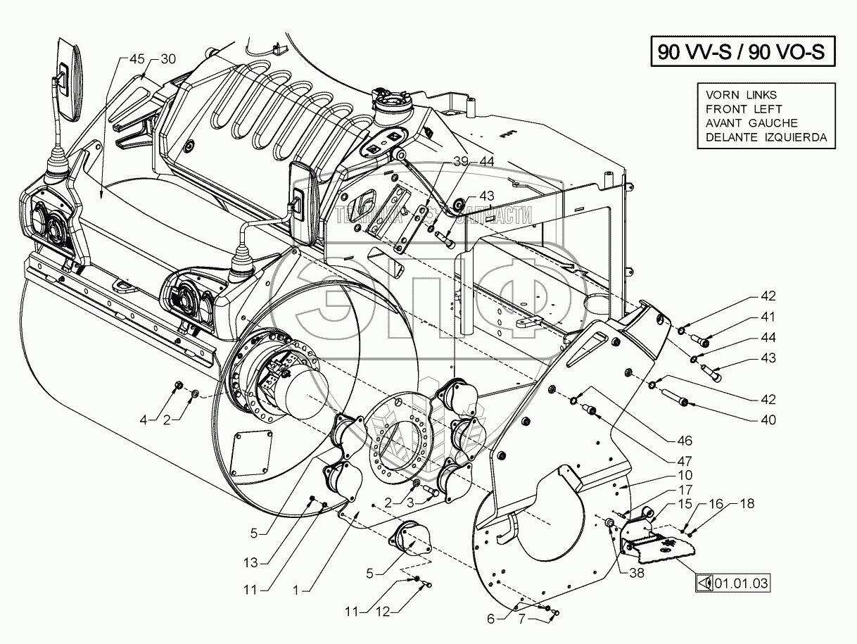 Каталог запасных частей к технике: HAMM HD90. SUSPENSION (ROLLER DRUM FRONT)