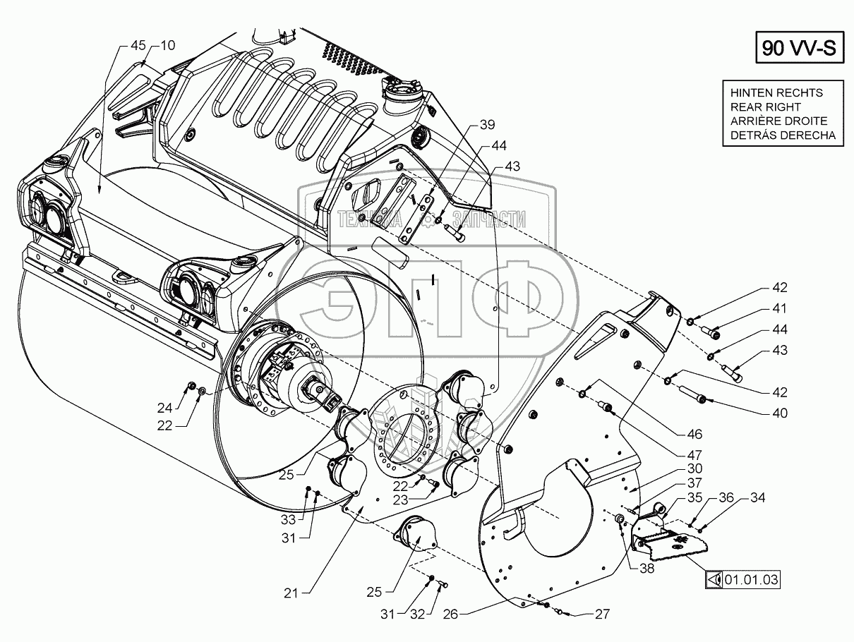 Каталог запасных частей к технике: HAMM HD90. SUSPENSION (ROLLER DRUM REAR)