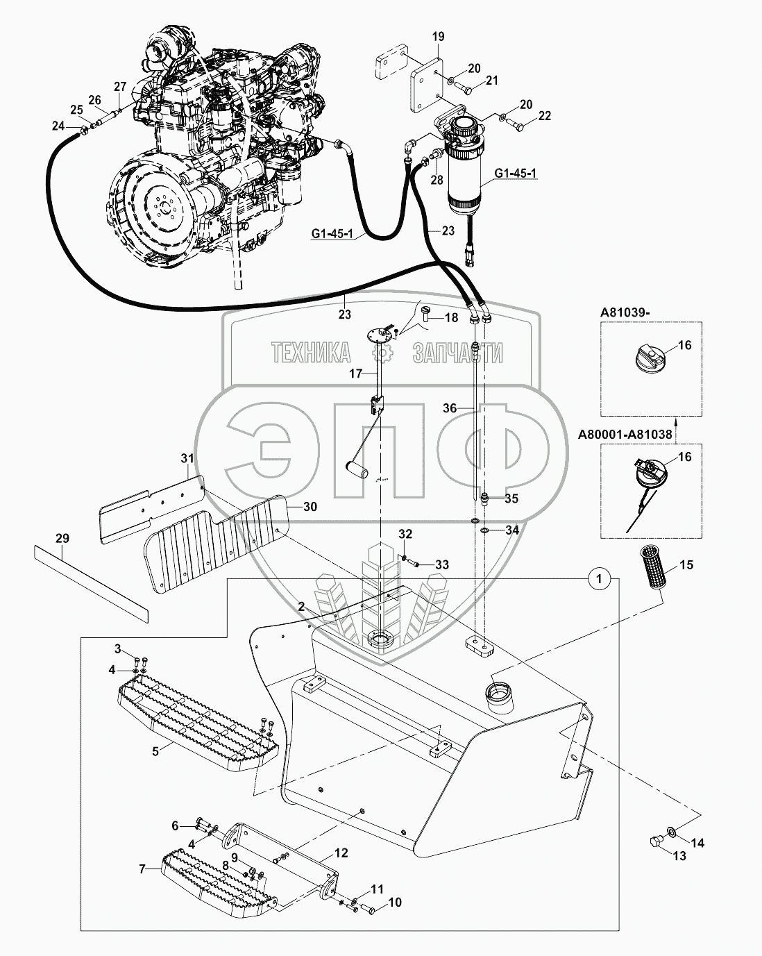 Каталог запасных частей к технике: Hidromek 102S MAESTRO. FUEL SYSTEM A80001 -