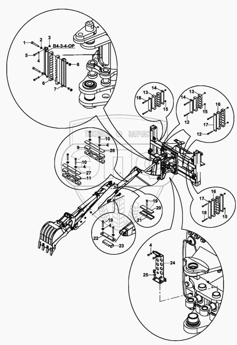 Каталог запасных частей к технике: Hidromek HMK 102B. HOSE HOLDER SET, HYDRAULIC, TB, BACKHOE