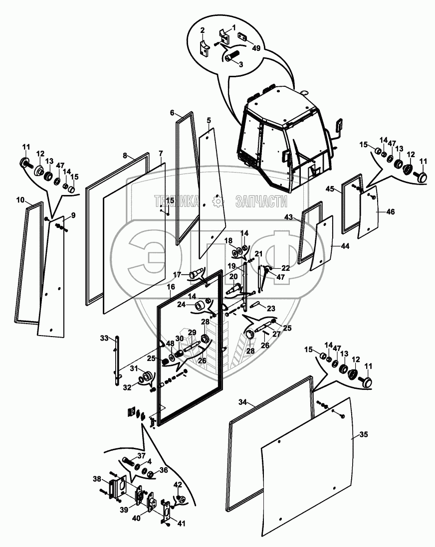 Каталог запасных частей к технике: Hidromek HMK 102B. WINDOWS, FRONT - REAR