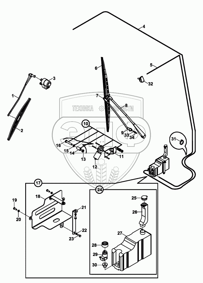 Каталог запасных частей к технике: Hidromek HMK 102B. WIPER SYSTEM