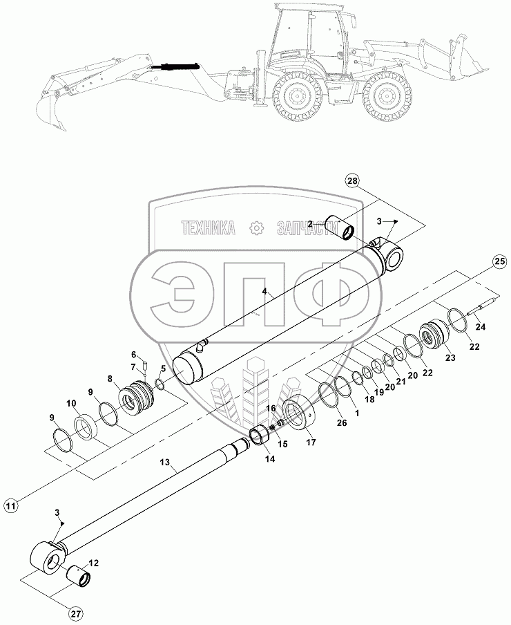 Каталог запасных частей к технике: Hidromek HMK 102S ALPHA. ARM CYLINDER, BACKHOE
