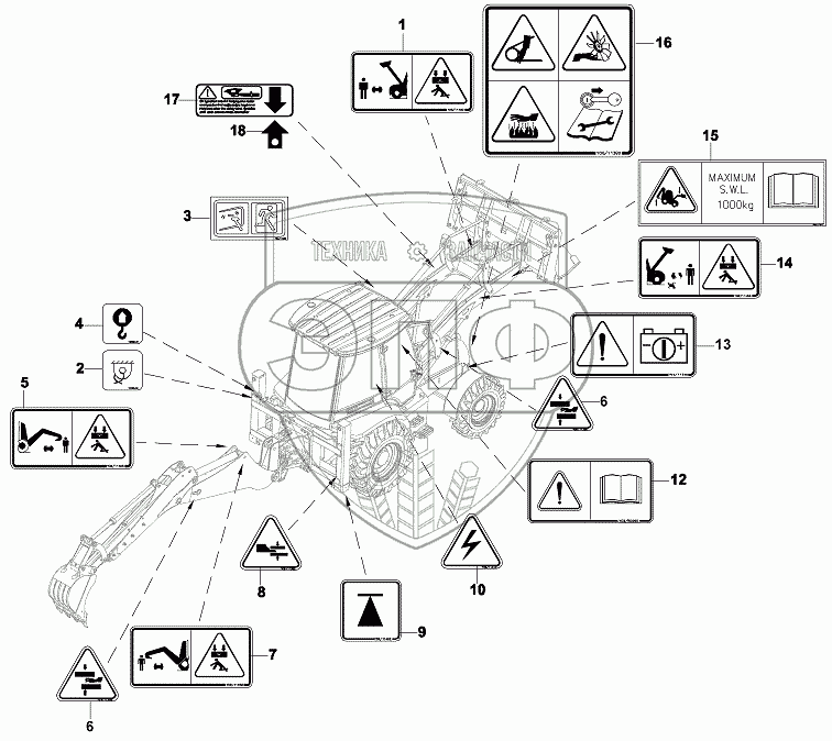 | 7 | Y0611450 | DECAL, BACKHOE WARNING, RH | Нет на складе | |