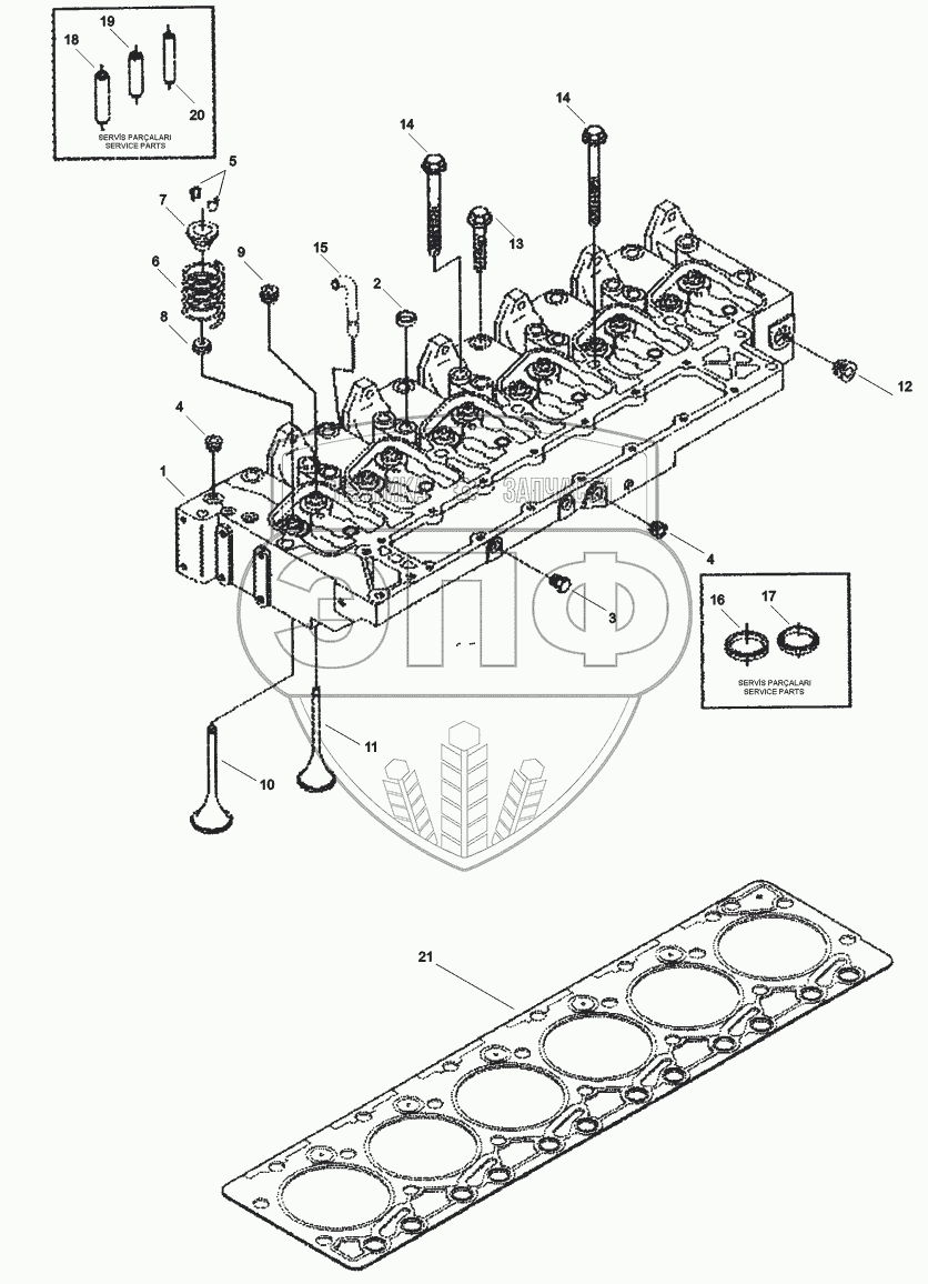 Каталог запасных частей к технике: Hidromek HMK 200W. CYLINDER HEAD