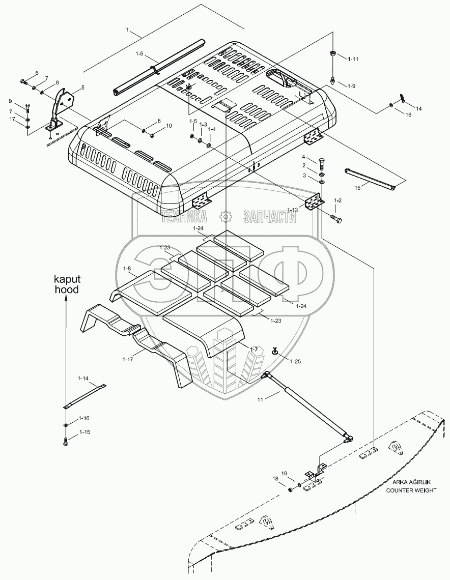 Каталог запасных частей к технике: Hidromek HMK 220LC-2. COWLING MOUNTING