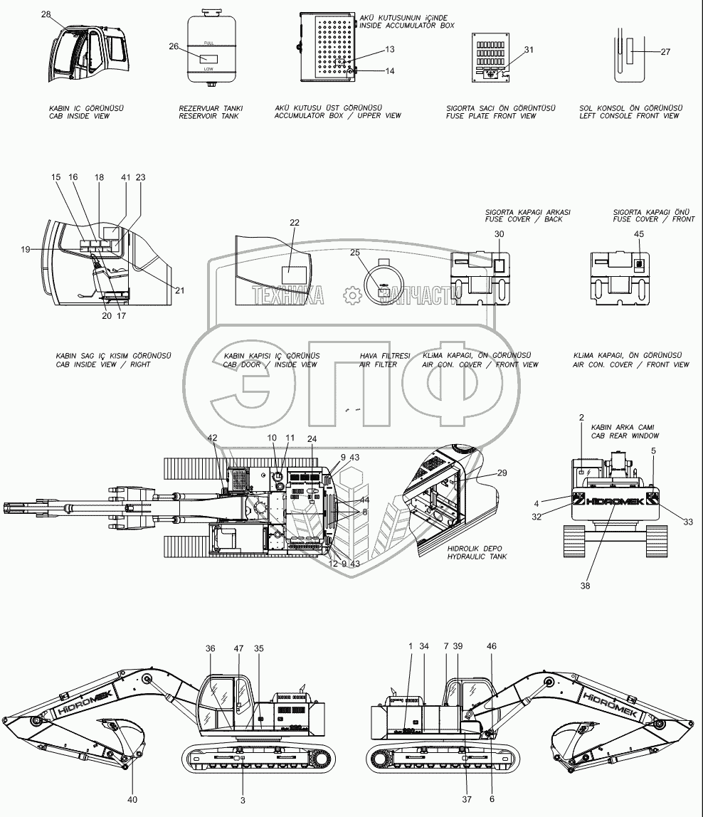 Каталог запасных частей к технике: Hidromek HMK 220LC-2. DECAL MOUNTING (TURKISH)