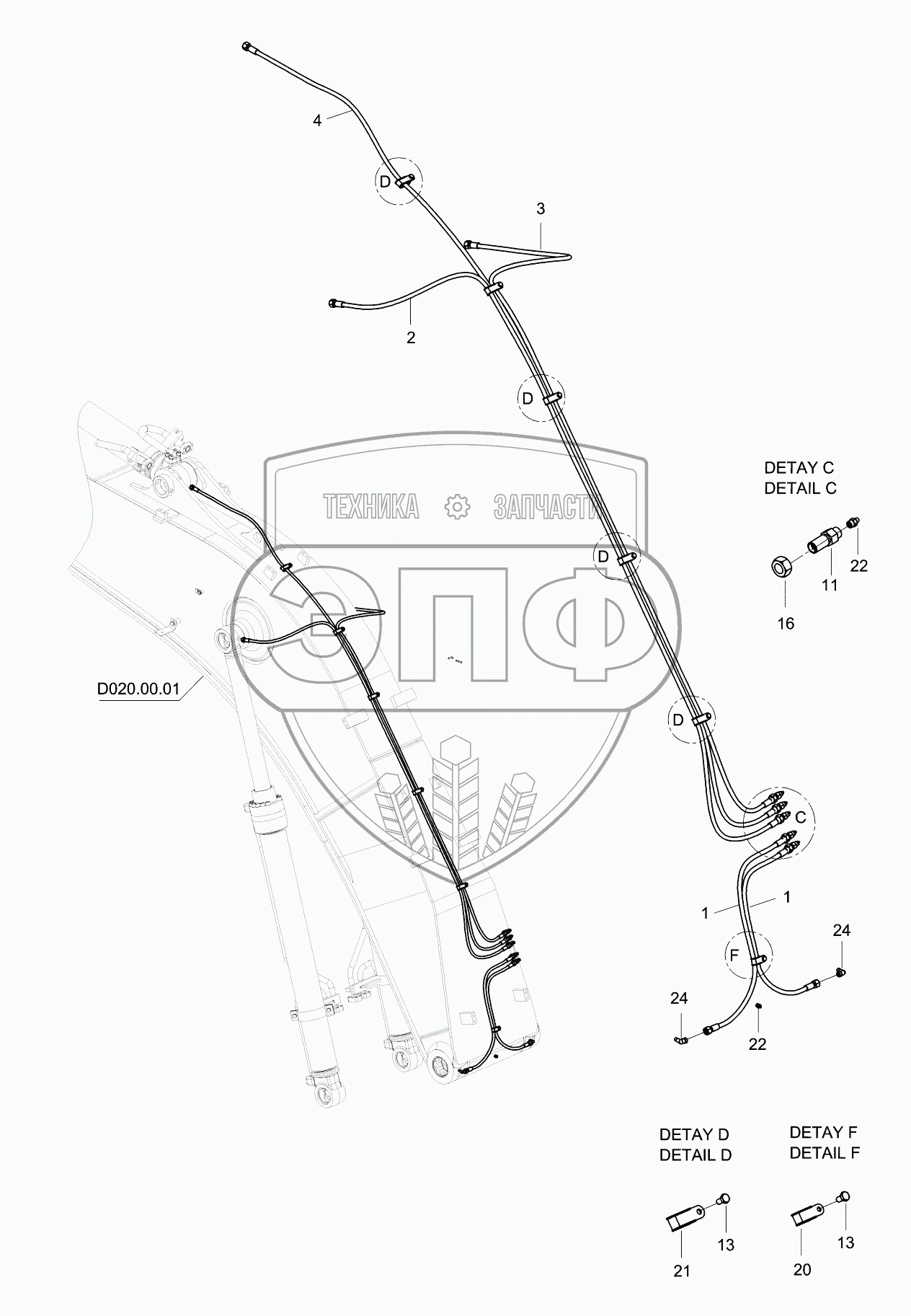 Каталог запасных частей к технике: Hidromek HMK 230LC3. ATTACHMENT GREASE LUB SYSTEM, BOOM