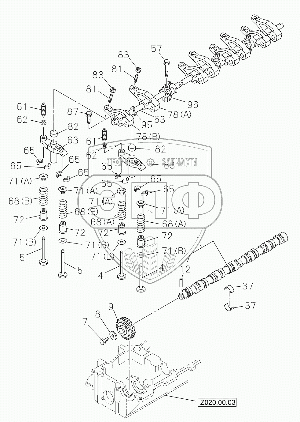 Каталог запасных частей к технике: Hidromek HMK 230LC3. CAM SHAFT & VALVE