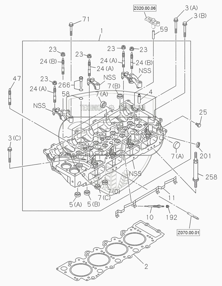 Каталог запасных частей к технике: Hidromek HMK 230LC3. CYLINDER HEAD 1