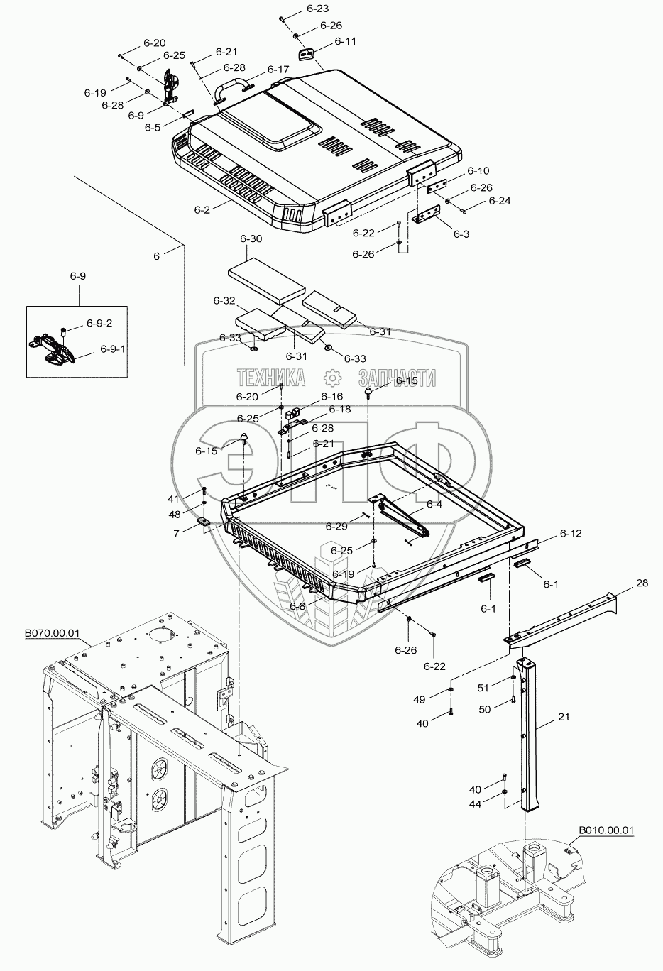 Каталог запасных частей к технике: Hidromek HMK 230LC3. ENGINE HOOD MOUNTING