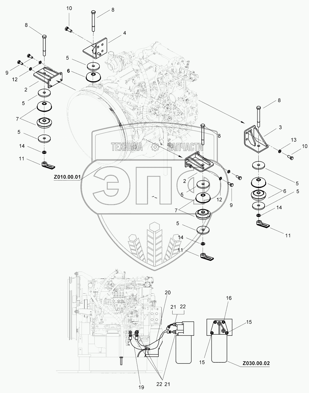 Каталог запасных частей к технике: Hidromek HMK 230LC3. ENGINE MOUNTING