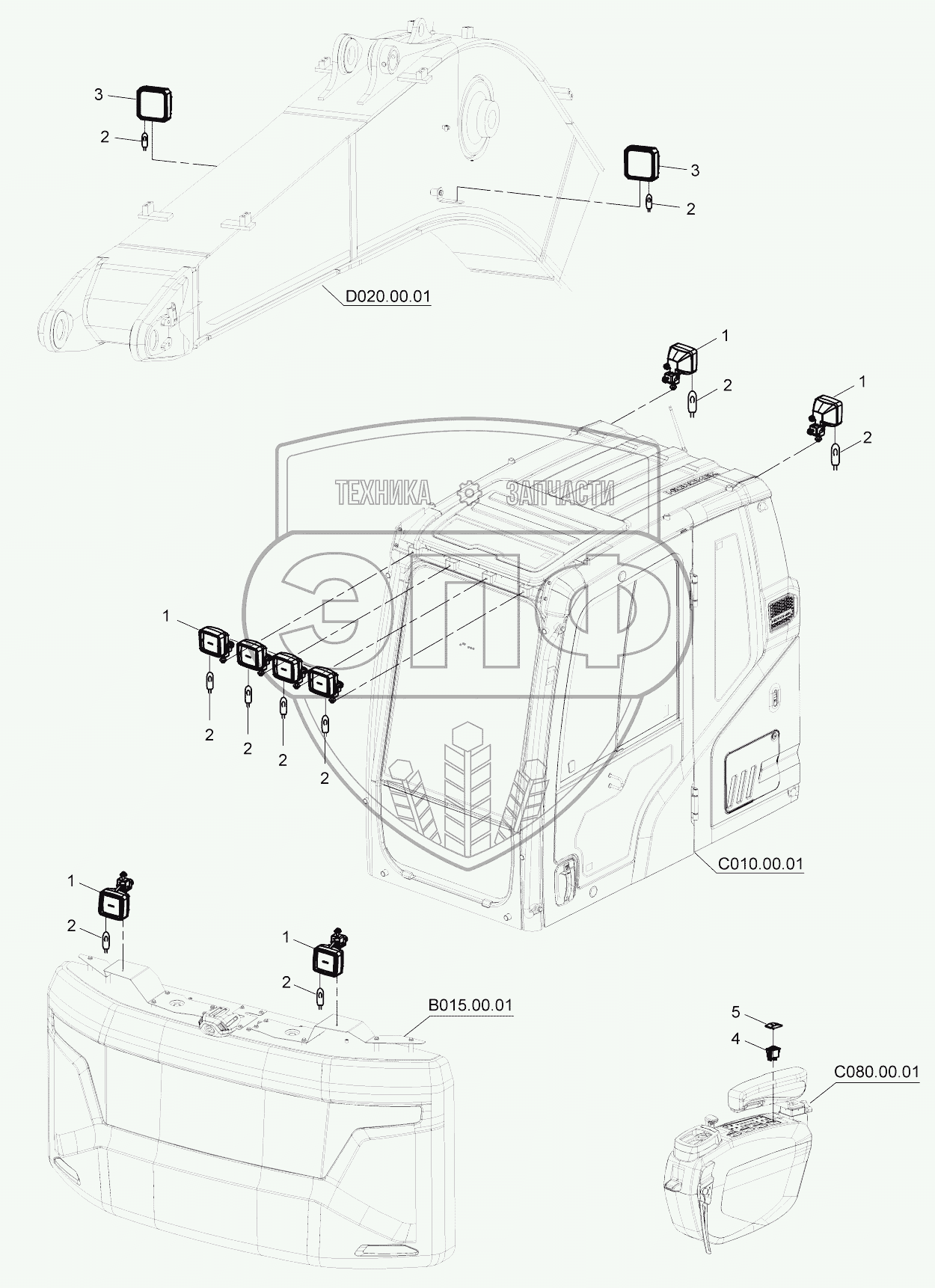 Каталог запасных частей к технике: Hidromek HMK 230LC3. LIGHTING GROUP, WITH HALOGEN