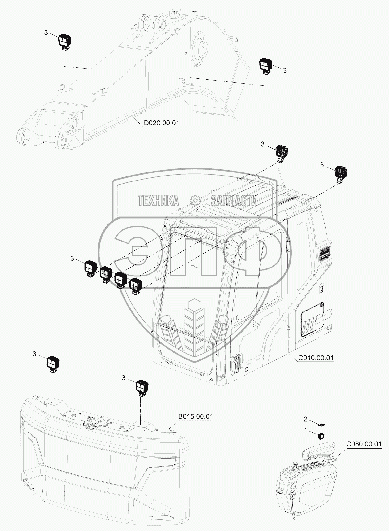 Каталог запасных частей к технике: Hidromek HMK 230LC3. LIGHTING GROUP, WITH LED