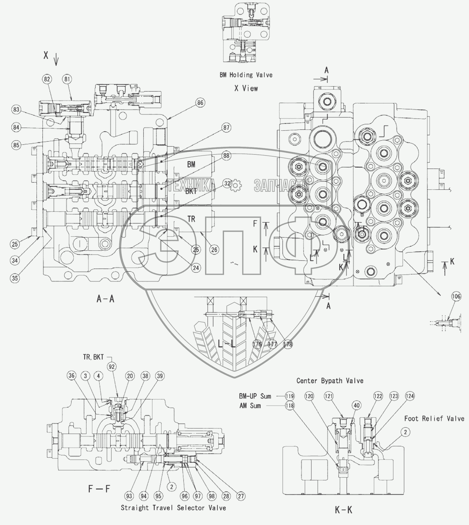 Каталог запасных частей к технике: Hidromek HMK 230LC3. MAIN CONTROL VALVE (1)