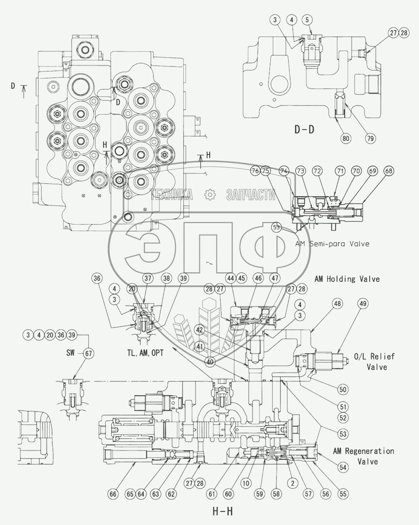 Каталог запасных частей к технике: Hidromek HMK 230LC3. MAIN CONTROL VALVE (4)