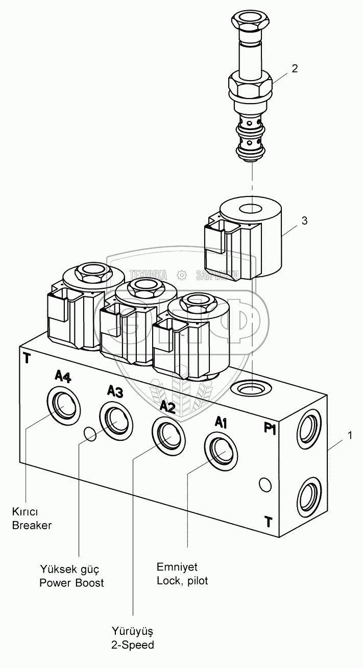 Каталог запасных частей к технике: Hidromek HMK 230LC3. SOLENOID VALVE, 4 SECTION
