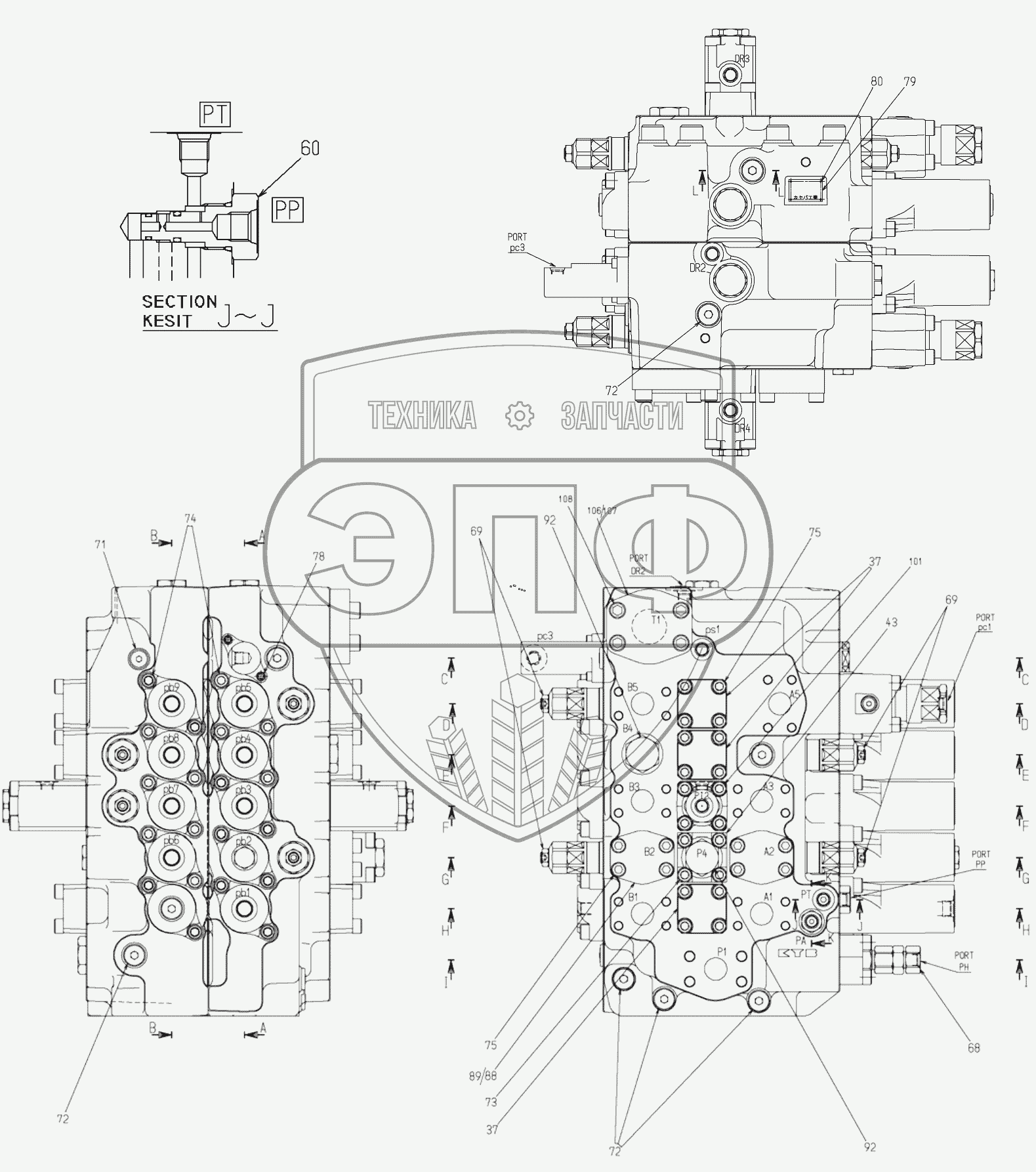 Каталог запасных частей к технике: Hidromek HMK 300LC. MAIN CONTROL VALVE (1)