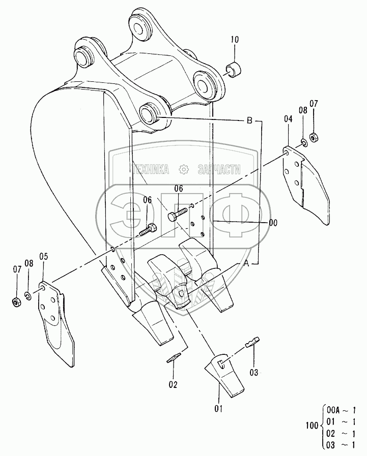 Каталог запасных частей к технике: Hitachi EX-100-2. BUCKET 0.17,