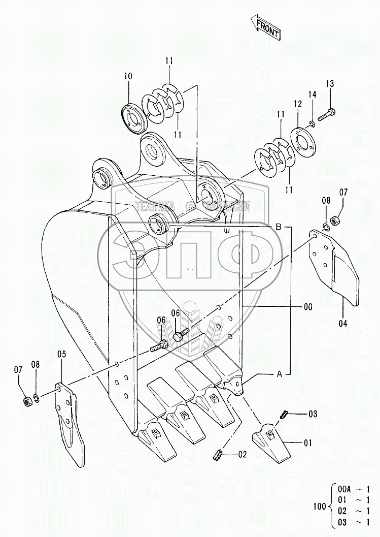 Каталог запасных частей к технике: Hitachi EX-100-2. BUCKET 0.33,