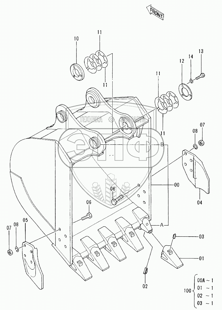 Каталог запасных частей к технике: Hitachi EX-100-2. BUCKET 0.5,