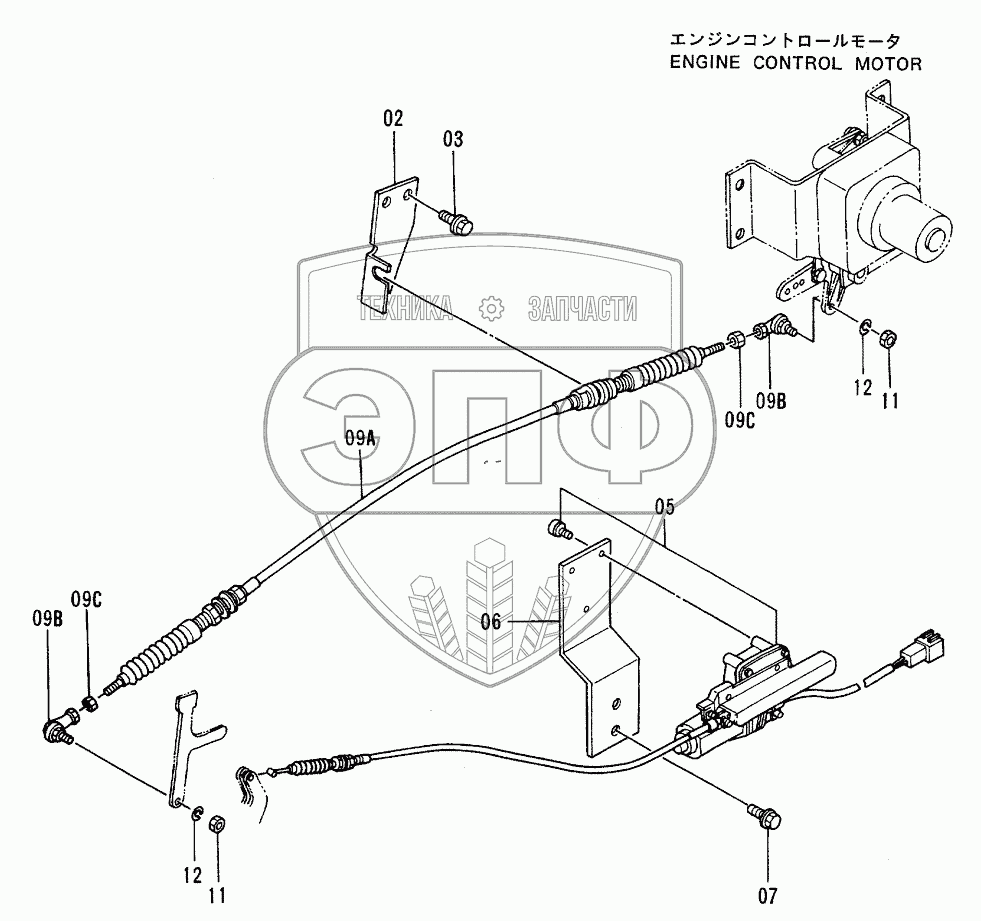 Каталог запасных частей к технике: Hitachi EX-100-2. ENGINE CONTROL CABLE