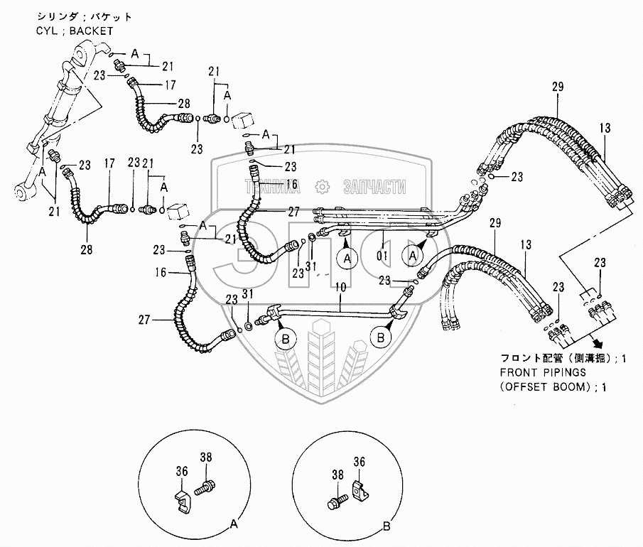 Каталог запасных частей к технике: Hitachi EX-100-2. FRONT PIPINGS (OFFSET BOOM): 3