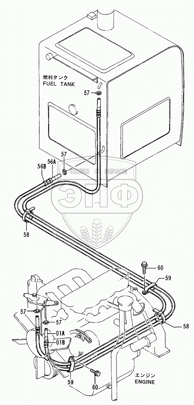 Каталог запасных частей к технике: Hitachi EX-100-2. FUEL PIPINGS