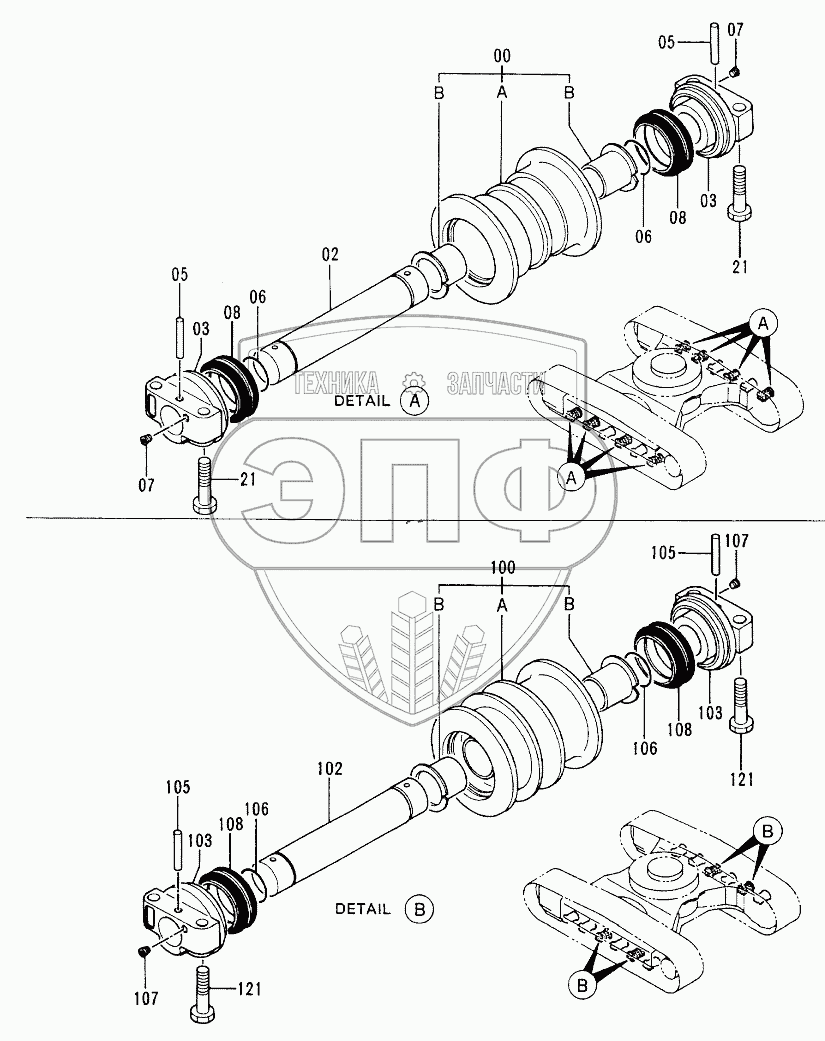 Каталог запасных частей к технике: Hitachi EX-100-2. LOWER ROLLER (RUBBER CRAWLER)