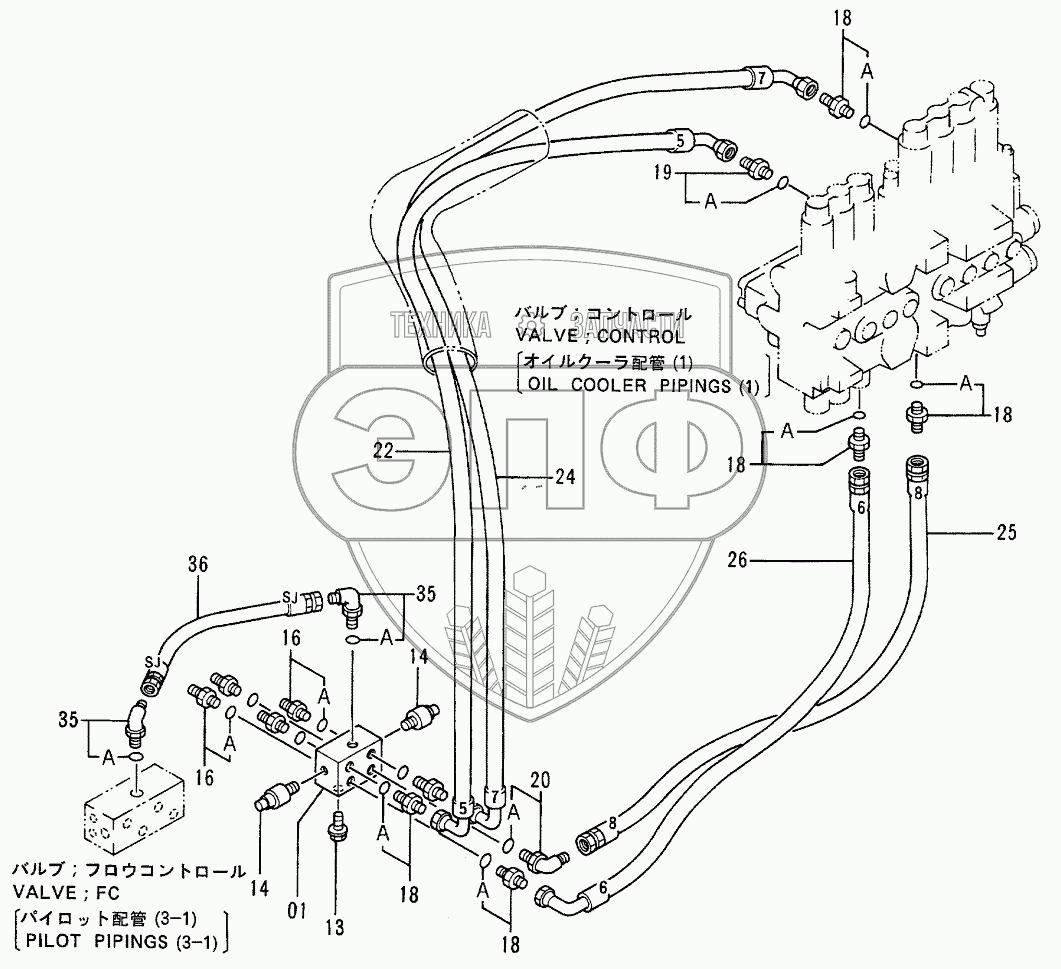 Каталог запасных частей к технике: Hitachi EX-100-2. PILOT PIPINGS (3-2)