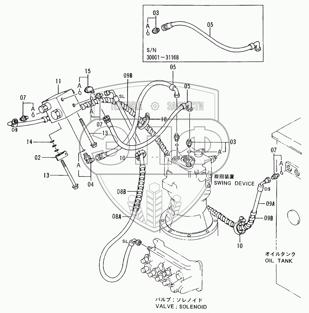 Каталог запасных частей к технике: Hitachi EX-100-2. SWING PIPINGS