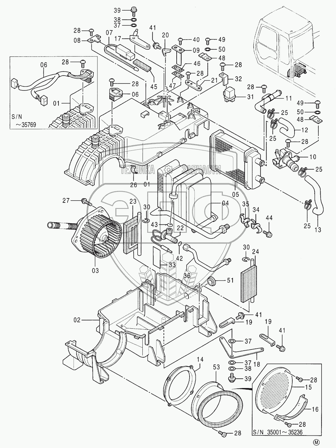 Каталог запасных частей к технике: Hitachi EX-100-3. AIR-CON. UNIT