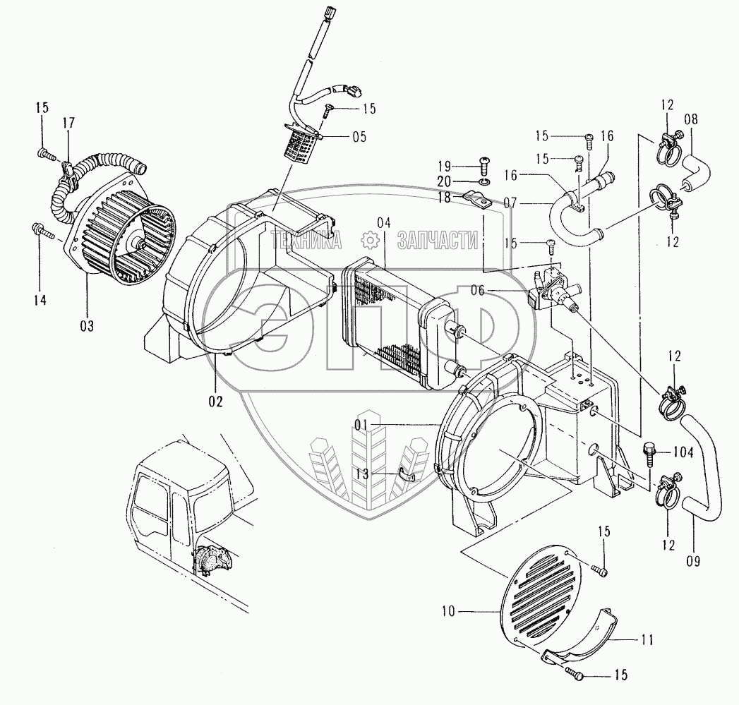 Каталог запасных частей к технике: Hitachi EX-100-3. CAR HEATER (035144 - 036556)