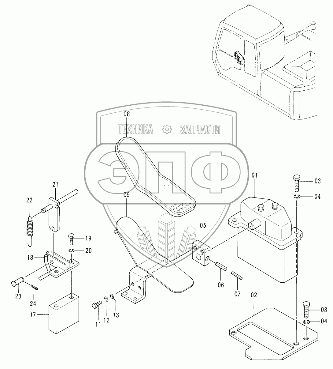 Каталог запасных частей к технике: Hitachi EX-100-3. CONTROL PEDAL <OFFSET BOOM>