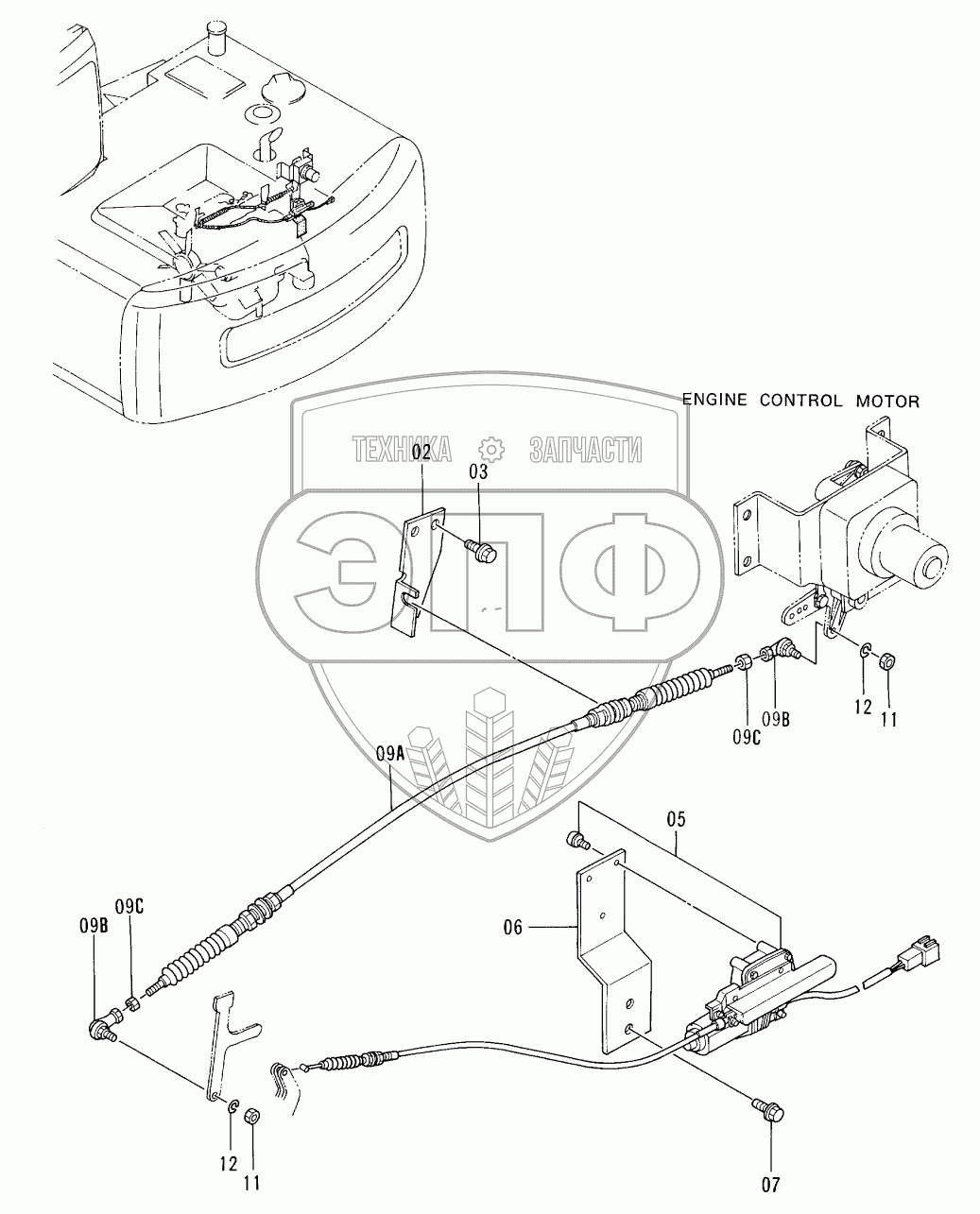 Каталог запасных частей к технике: Hitachi EX-100-3. ENGINE CONTROL CABLE