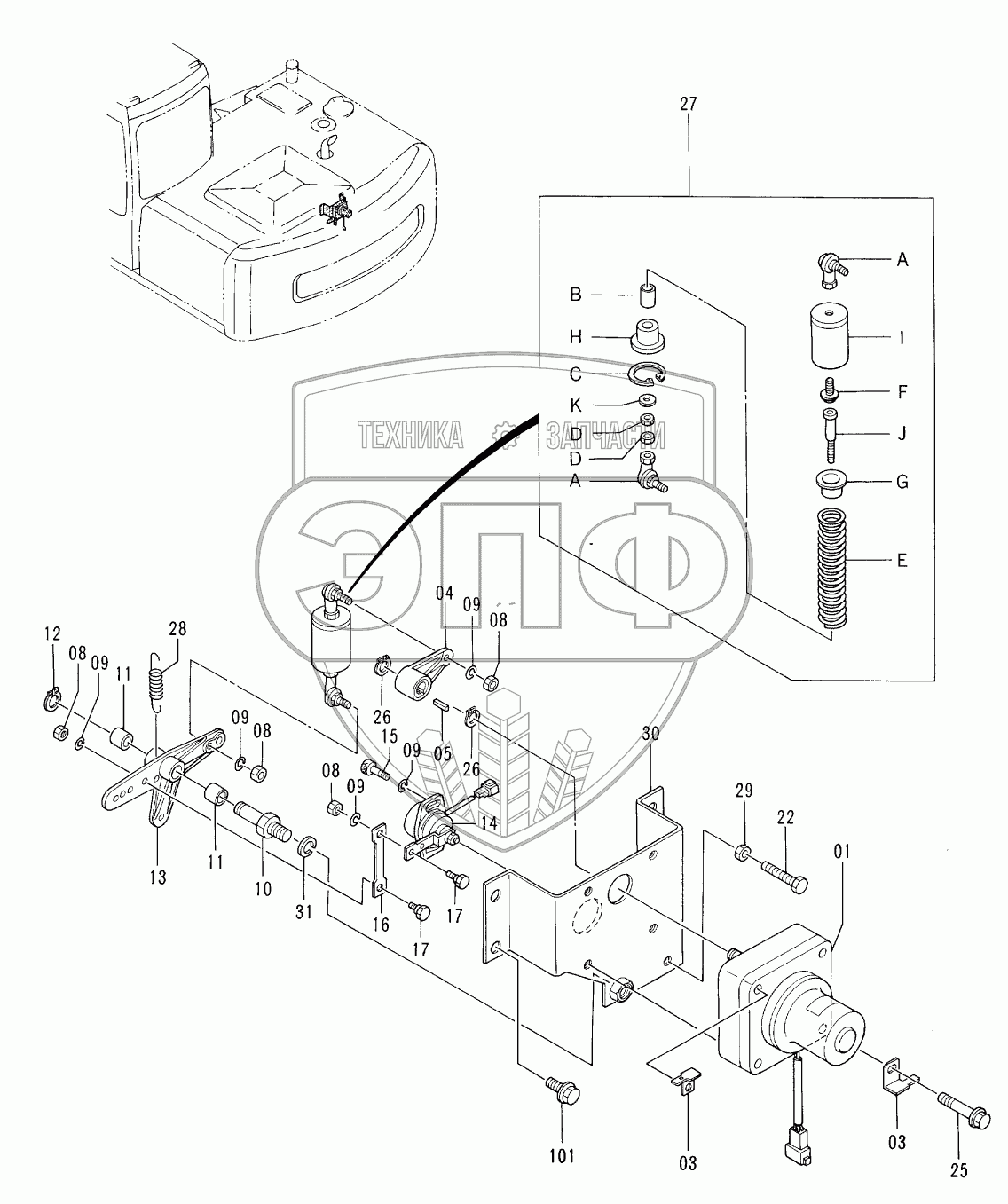Каталог запасных частей к технике: Hitachi EX-100-3. ENGINE CONTROL MOTOR